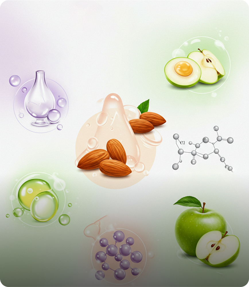 Extracted from bitter almonds, this alpha hydroxy acid is excellent for all skin types and skin tones.